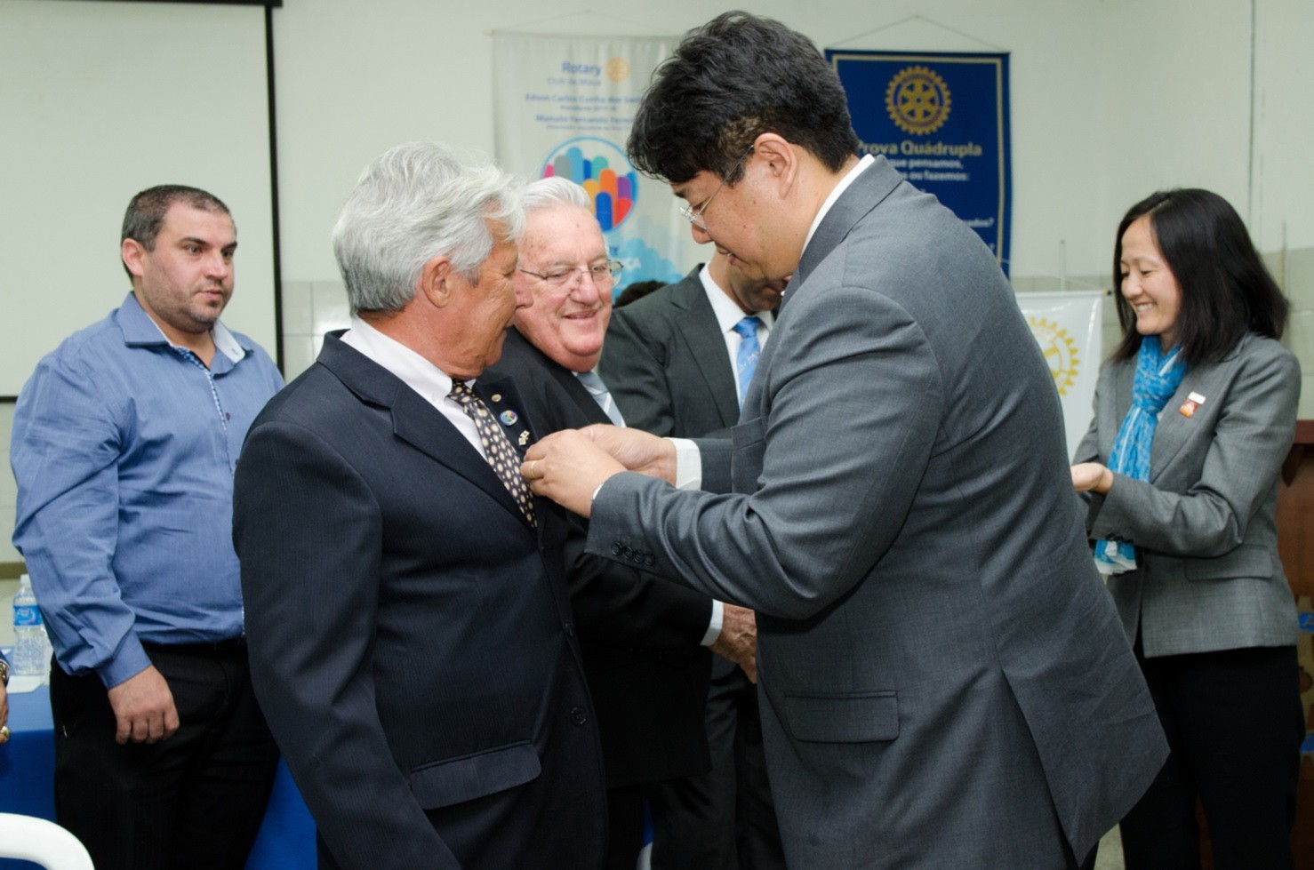 Ao termino das reuniões iniciamos a nossa Festiva que contou com homenagens a mais antiga professorado nosso município, aos sócios honorários, entrega de Títulos Paul Harris e com a posse de um novo companheiro.