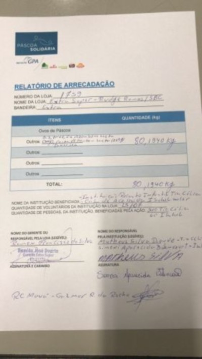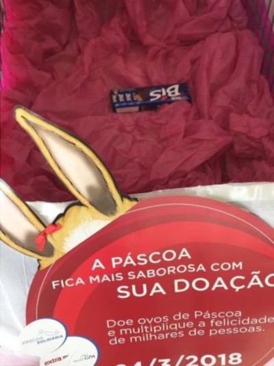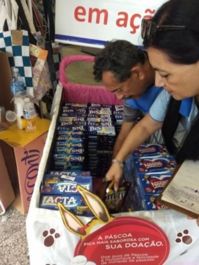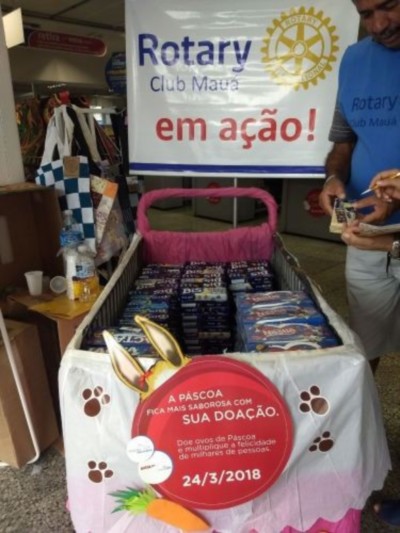 NO DIA 24/03/2017 O ROTARY CLUB DE MAUÁ JUNTAMENTE COM AS ENTIDADES RECANTO DA TIA CÉLIA E A CASA DE ACOLHIDA ISABEL SOLER REALIZARAM A PASCOA SOLIDARIA NA LOJA 1759 DO EXTRA SUPER RUDGE RAMOS ONDE FORAM ARRECADADOS 80,149 KG DE CHOCOLATES PERFAZENDO UM TOTAL DE 580 PEÇAS.